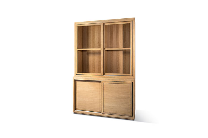 Base in rovere 2 ante scorrevoli in legno, alzata 2 ante scorrevoli in vetro