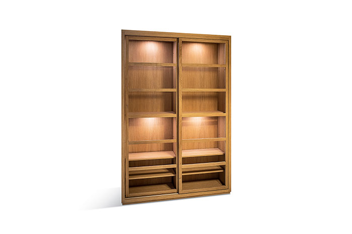 vetrina in rovere 2 ante scorrevoli in vetro con ripiani in legno