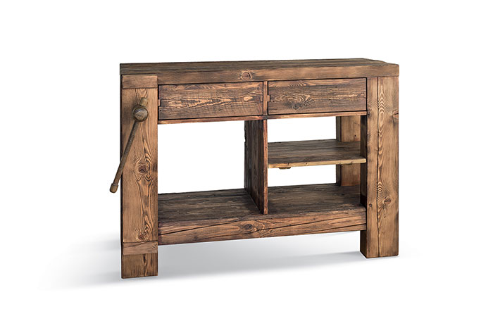 Tavolo da lavoro 2 cassetti con ripiani e morsa